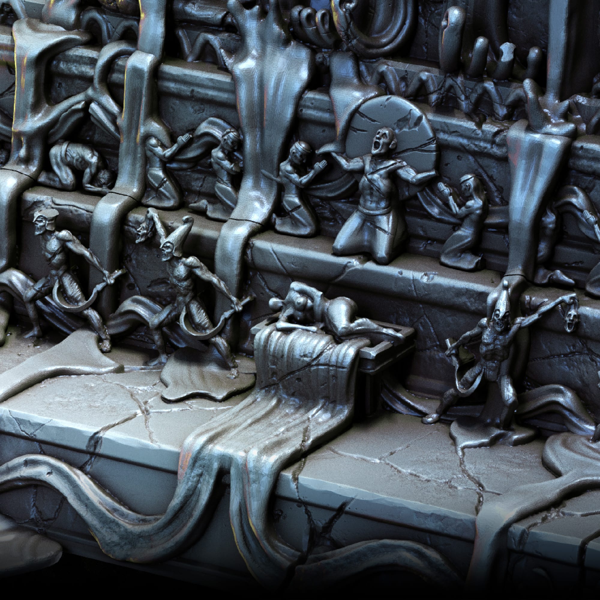 Now, they stir. Flickers of light pass through dust-choked corridors. Hollow footsteps echo from empty sanctuaries. Stone lids slide free as ancient dead return, pulled from repose by the promise once made to them. From these tombs crawl not only warriors and priestesses, but stranger things, golems fused with idols, masses of animate blood, and the slow, pulsing will of something greater than any petty risen zombie.