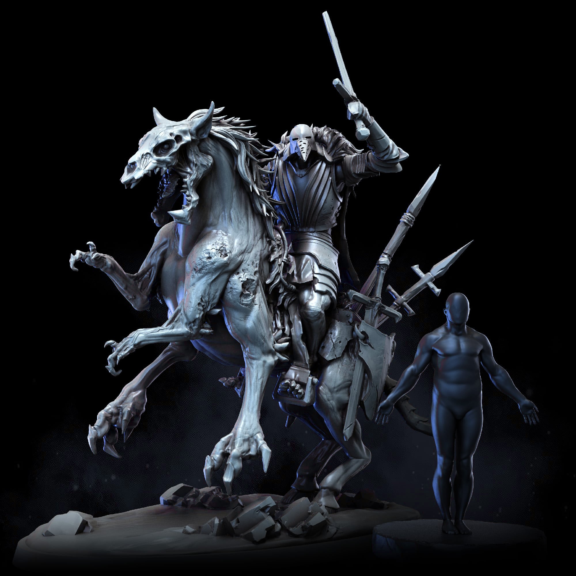 For centuries, Calden remained a dead place, its towers weathered, its halls abandoned. But something has changed. In recent years, folk travelling in the shadow of that dark keep have spoken of horrors riding from the mist-choked ruins. Raiders clad in rusted mail, bestial faces obscured by ancient helms, descend upon the living. Their arrows fly true, their blades bite deep, yet no mortal voice is heard among them. They fight without mercy, take no plunder, and leave only slaughter in their wake. The bipedal footprints of hounds evidence their advance, and where they march, the Wolf Banner flies once more.