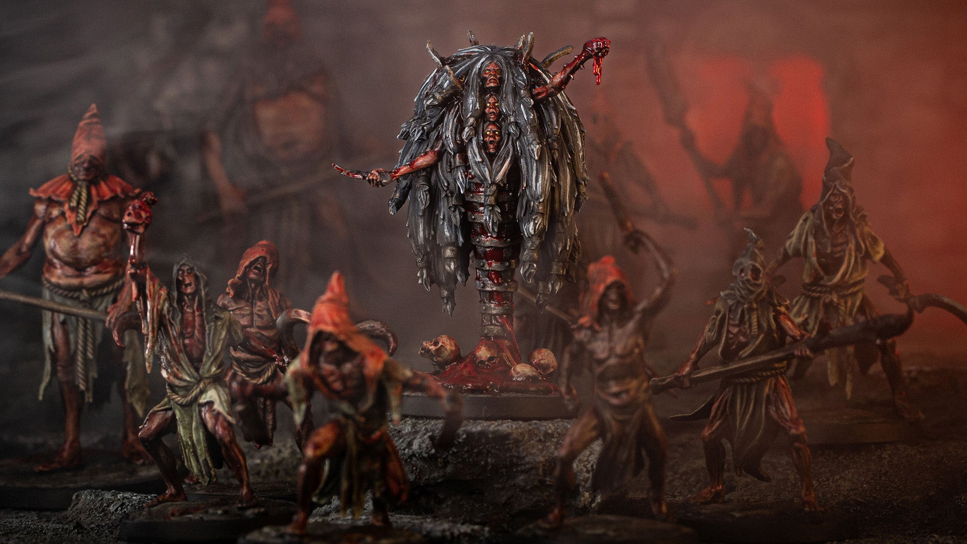 Like their dark lord, the Tormentor Cults revel in pain and despair. Their rituals, steeped in madness and brutality, harness raw anguish to summon forth abominable entities from the Prison Realm - entities too dreadful for mortal minds to conceive.