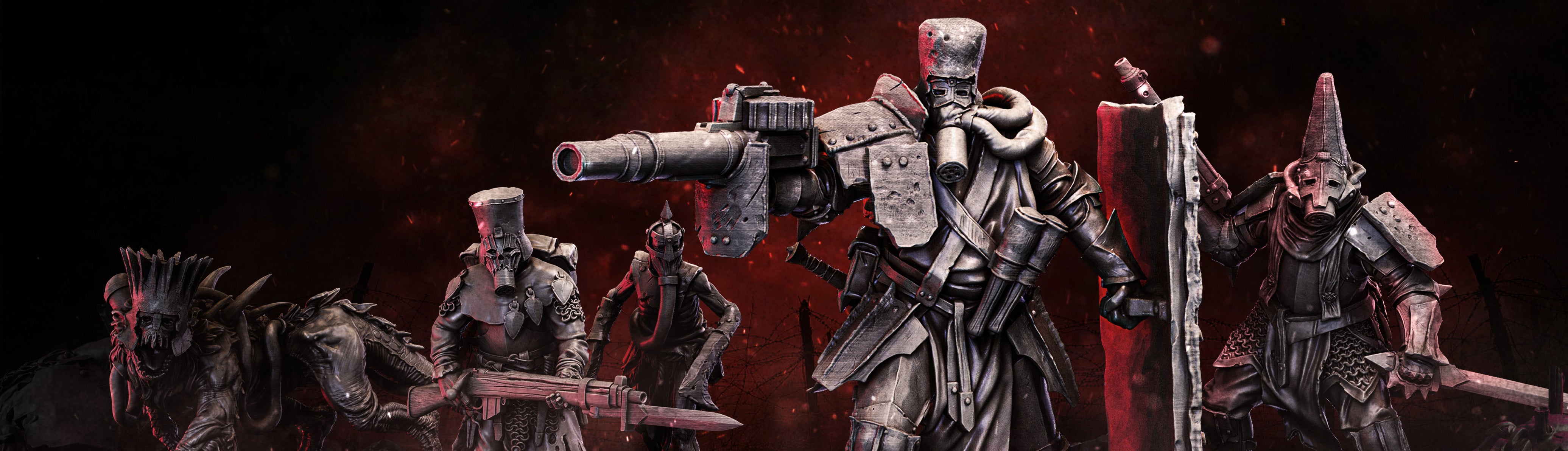 Unleash the Penitent Crusade in your Dieselpunk or Sci-Fi games with the Trench Invasion Pack.