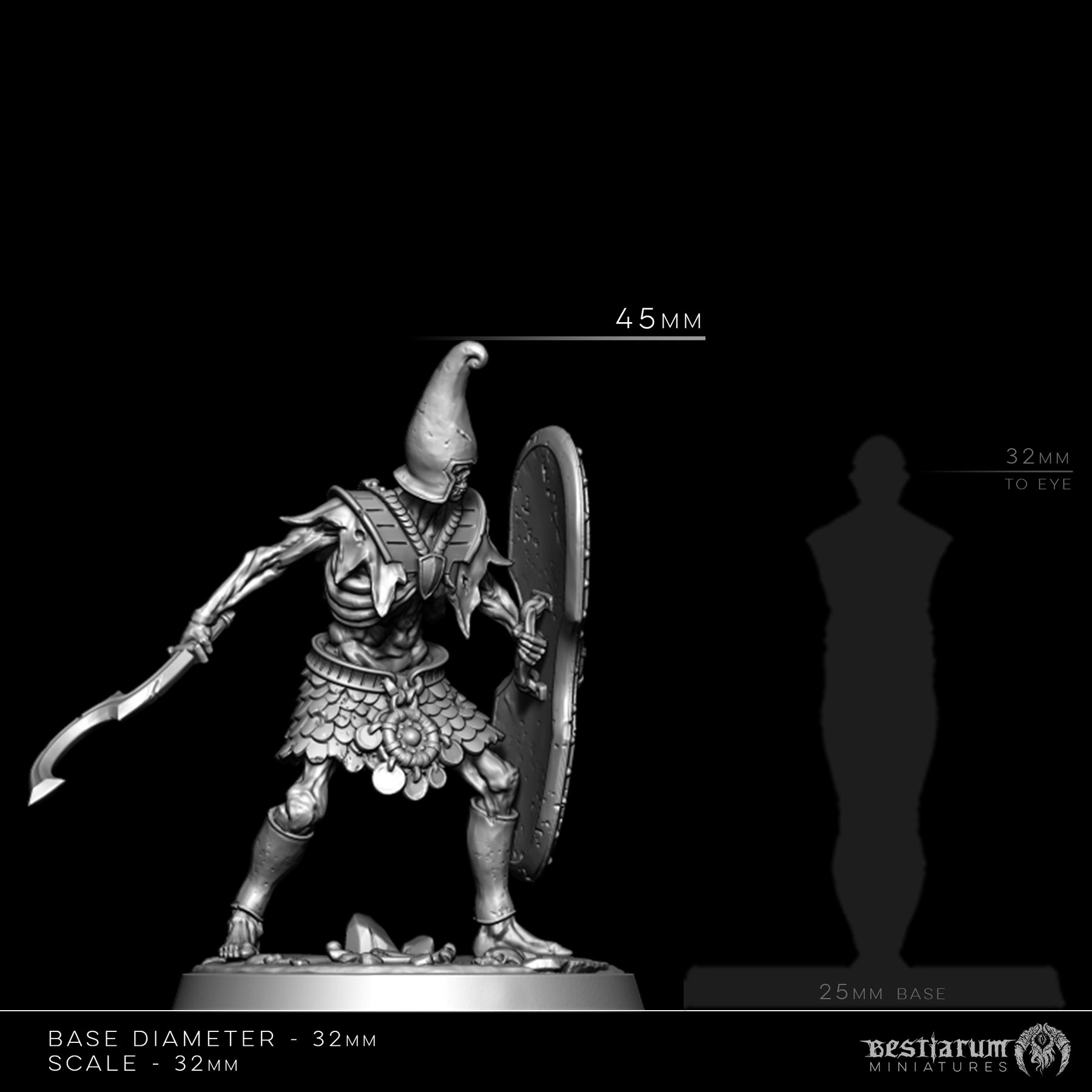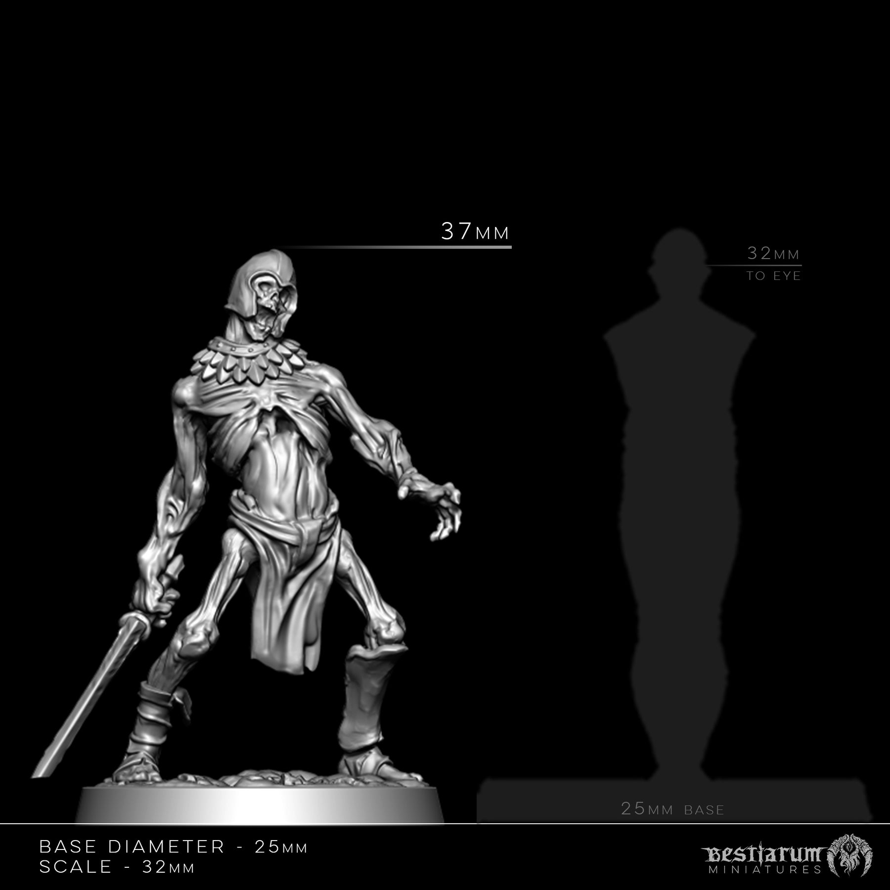 These are printed resin miniatures, in 32mm scale. Supplied with plastic bases. Refer to the technical images for information on size & scale.