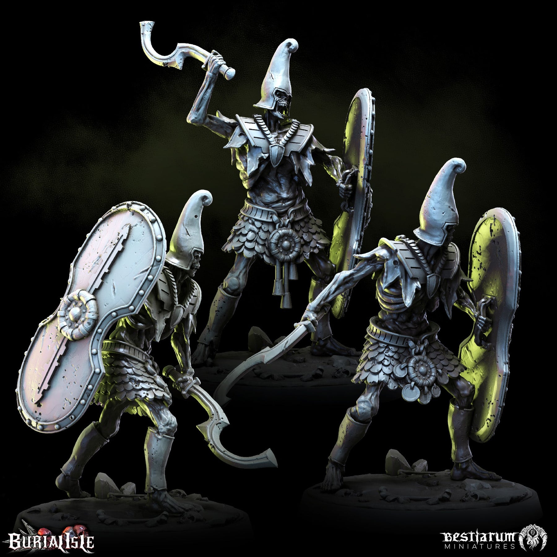 Raise the long-dead legions of Burial Isle with the Ancient Zombie Warband. Weathered corpses and ancient horrors await your command in wargames and roleplaying adventures alike.