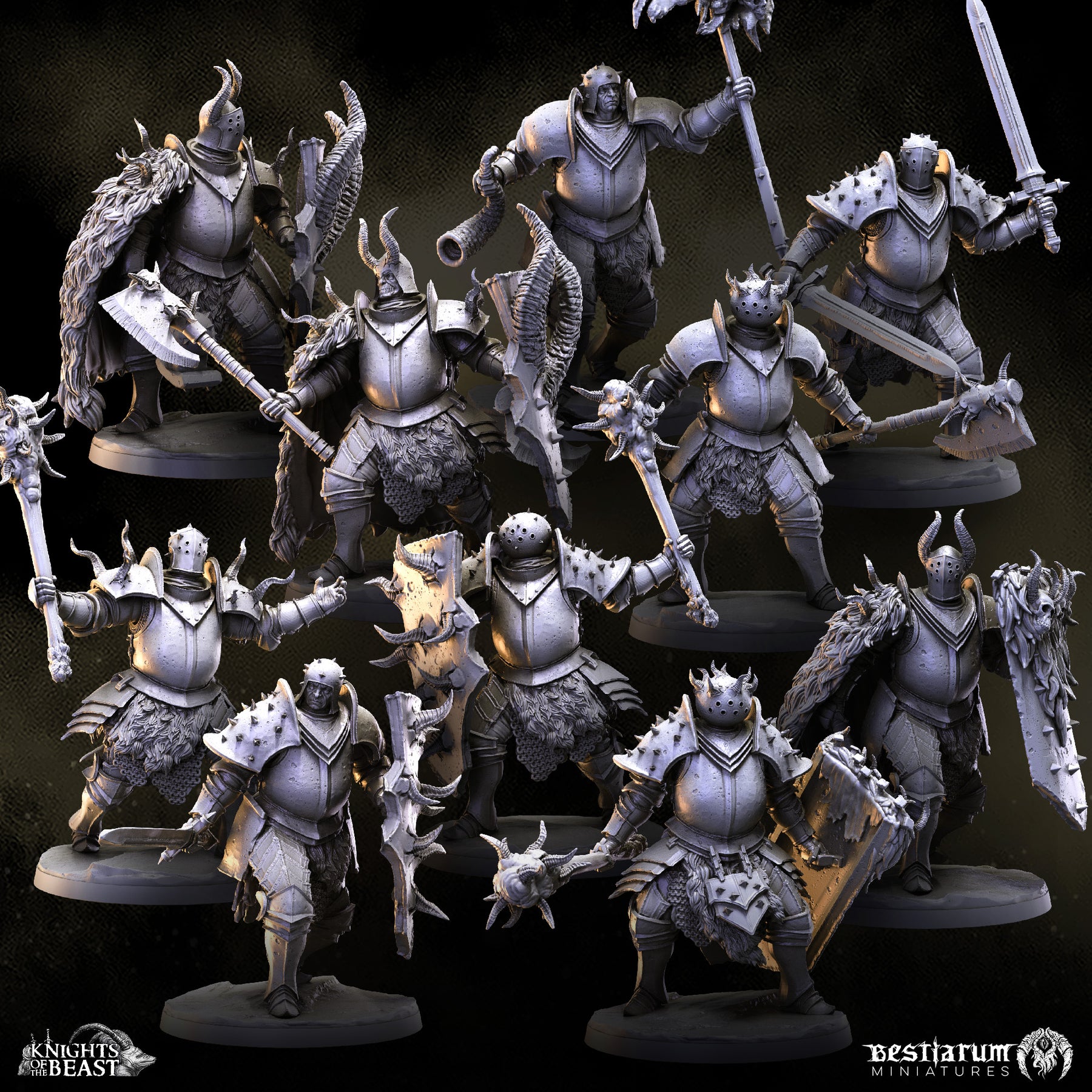 Ride into battle with the savage Knights of the Beast in the Chaos Knight Army. Half-knight, half-monster, these abominations charge across your wargames and RPGs with primal fury.