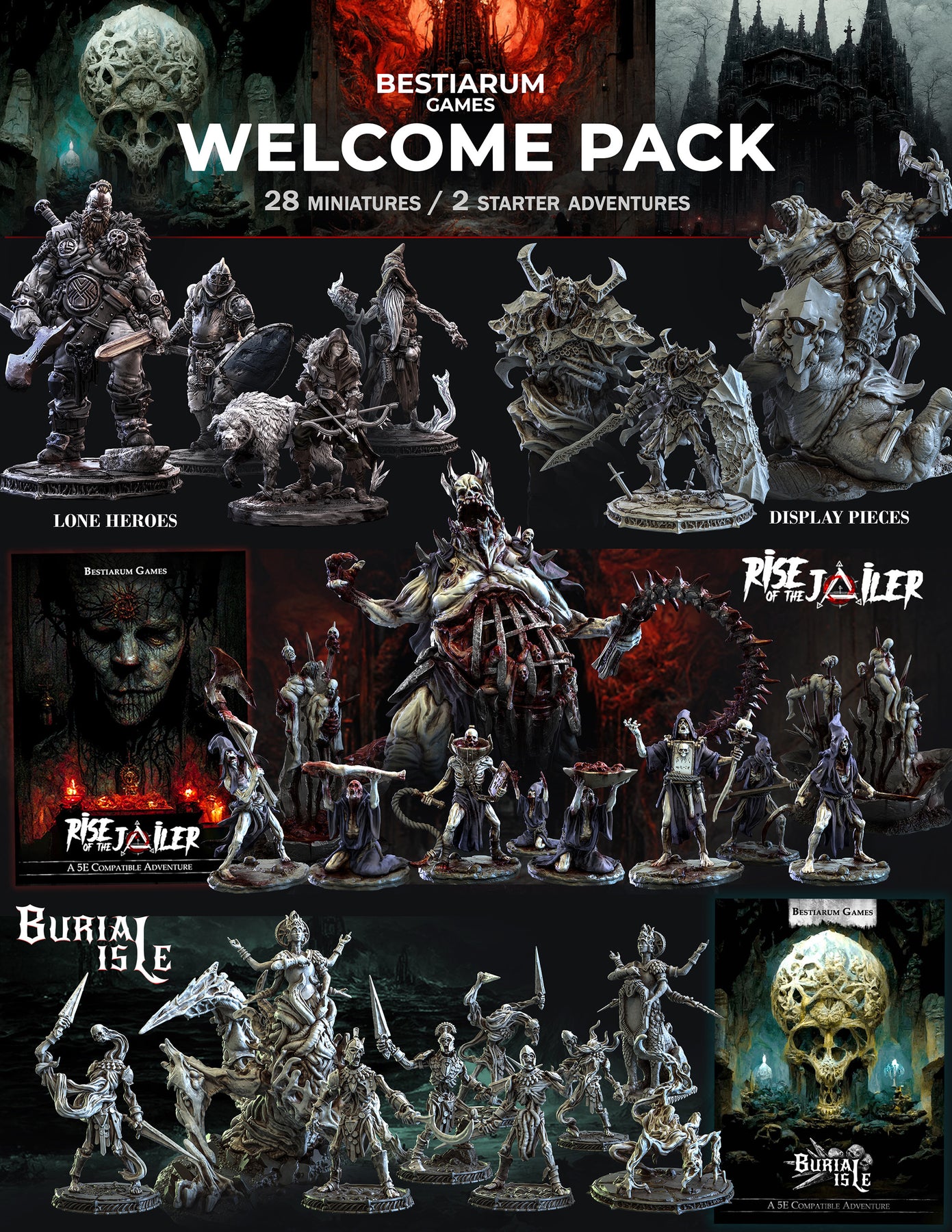 Our Welcome Pack is designed to kickstart your Bestiarum Collection, containing epic heroes, brutal foes and a raft of gaming resources to help you dive straight into the action.