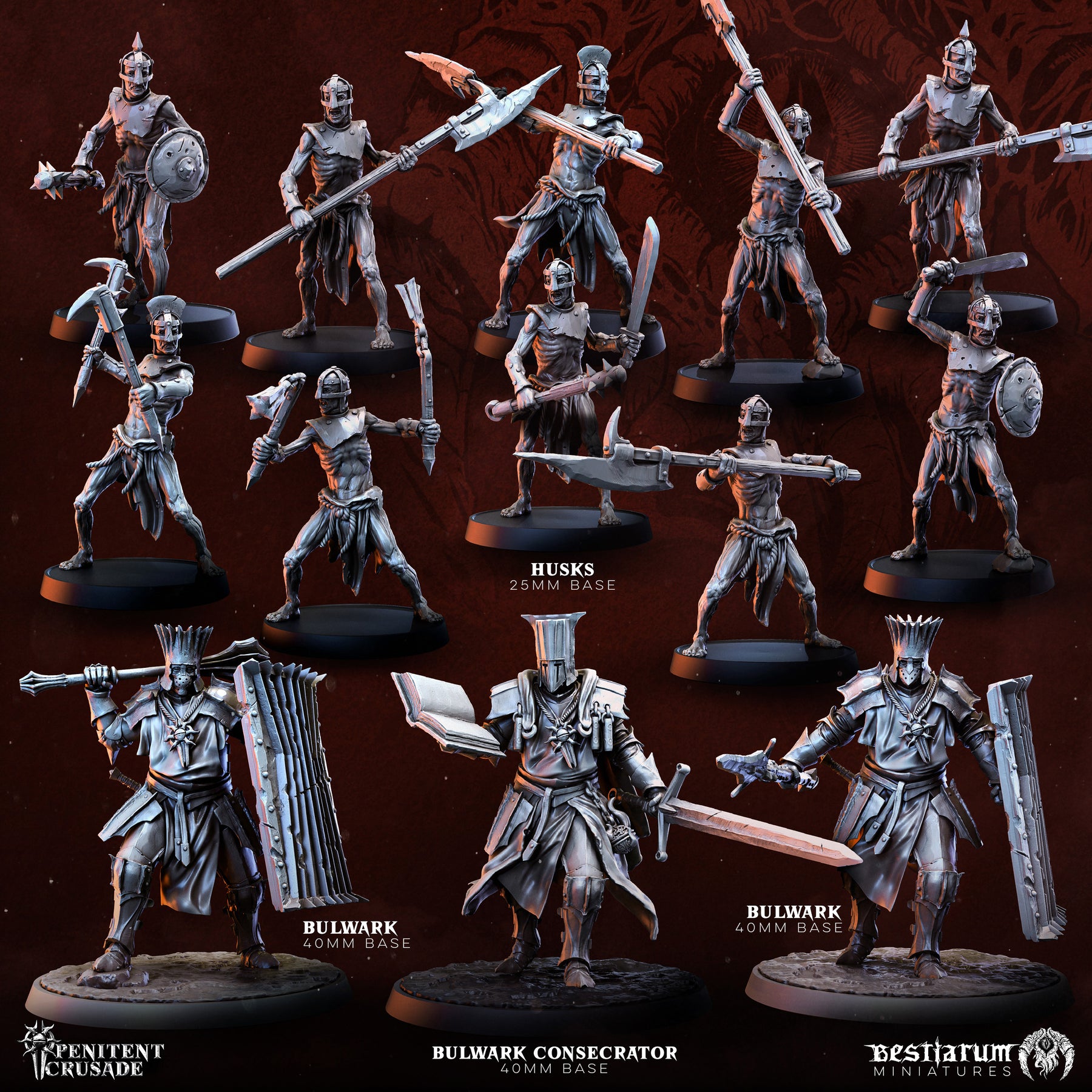 March under cursed banners with the Penitent Crusade in the Blasphemous Crusader Warband. These corrupted knights and zealots bring holy blasphemy and grimdark power to any tabletop.