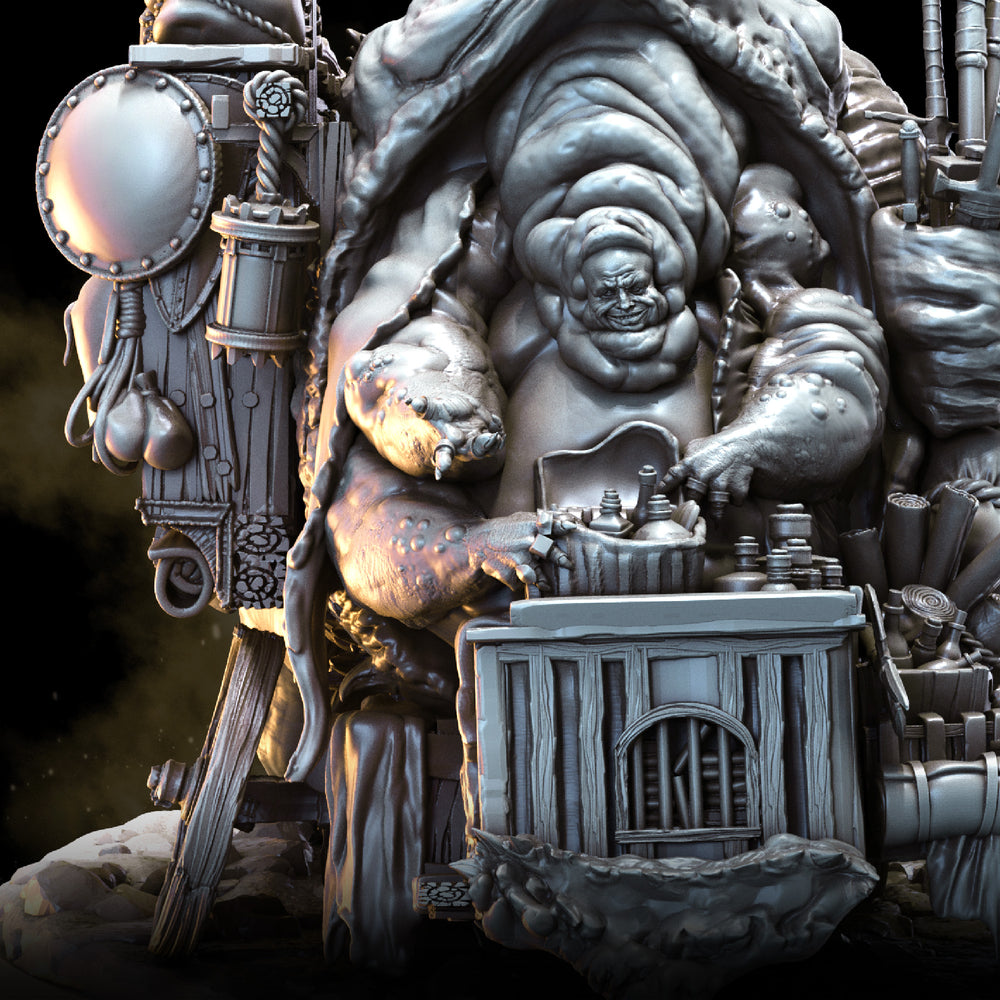 This hulking figure appears to be a monstrous amalgamation of man and mollusk, replete with numerous legs and wooden wheels aiding its locomotion. Brizt’s huge shell houses a plethora of trinkets and wares, sparkling with the promise of magic. As intimidating as its appearance might be, its eyes twinkle with a merchant’s cunning, always on the lookout for the next deal.