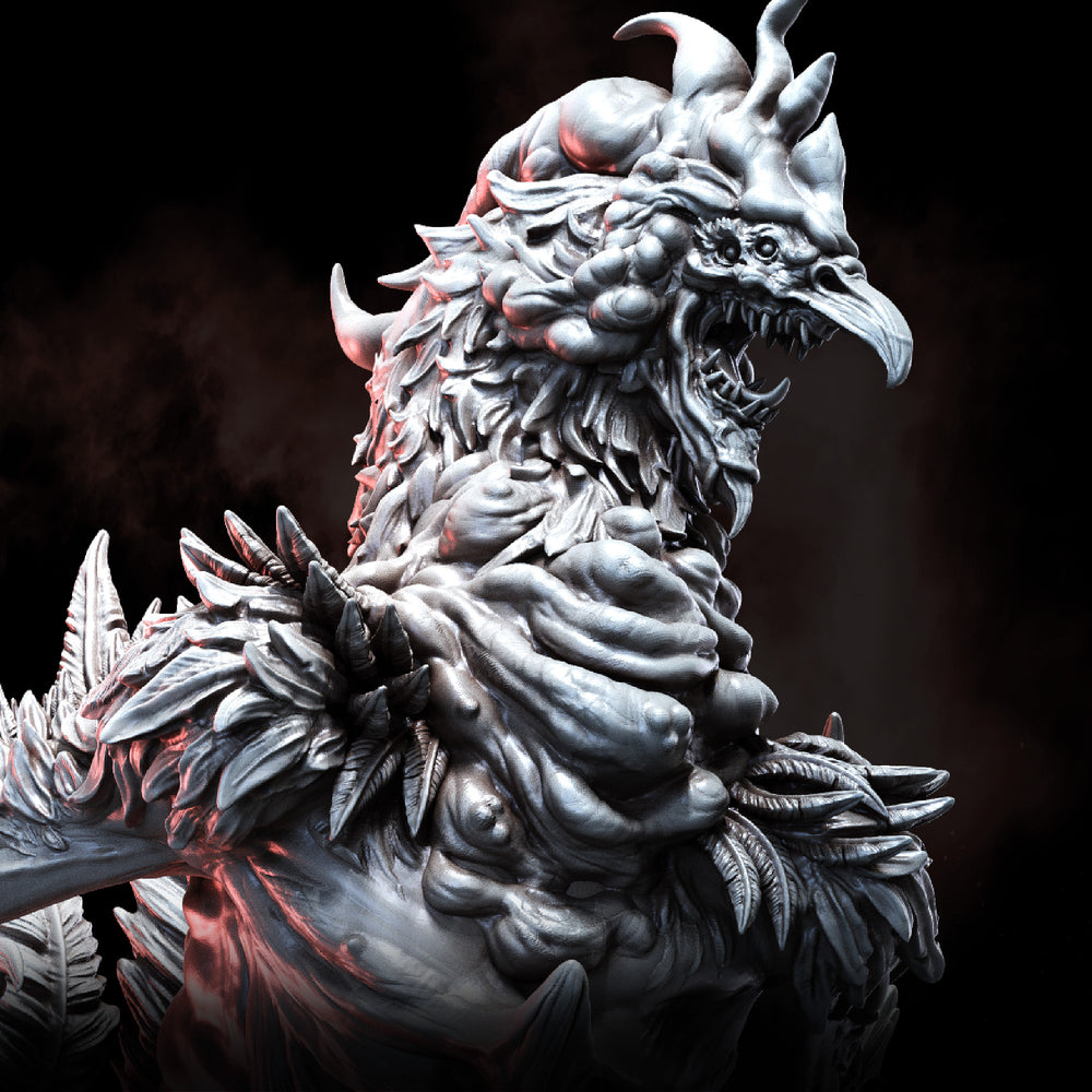 The cockatrice is a fearsome predator that stalks the wild, possessing both the fortitude of its draconic bloodline and the fearlessness of a rooster.
