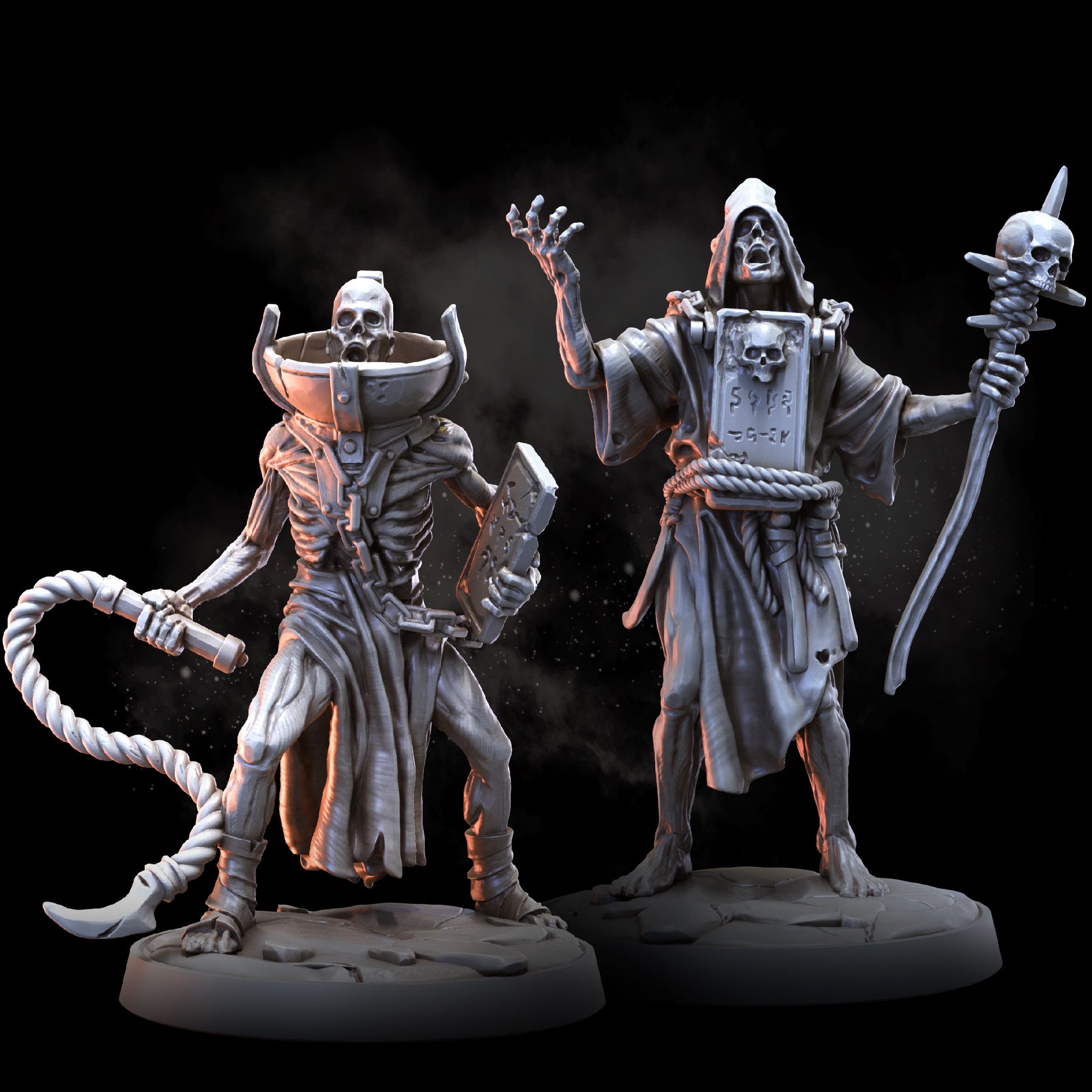 Two Cult Demagogues. Leading their congregations, the Demagogues of the Tormentor Cults direct the adherents to further the will of their dark lord. Singularly blessed, it is the Demagogues who hear the whispers of the Jailer, sequestered off in his far away realm.