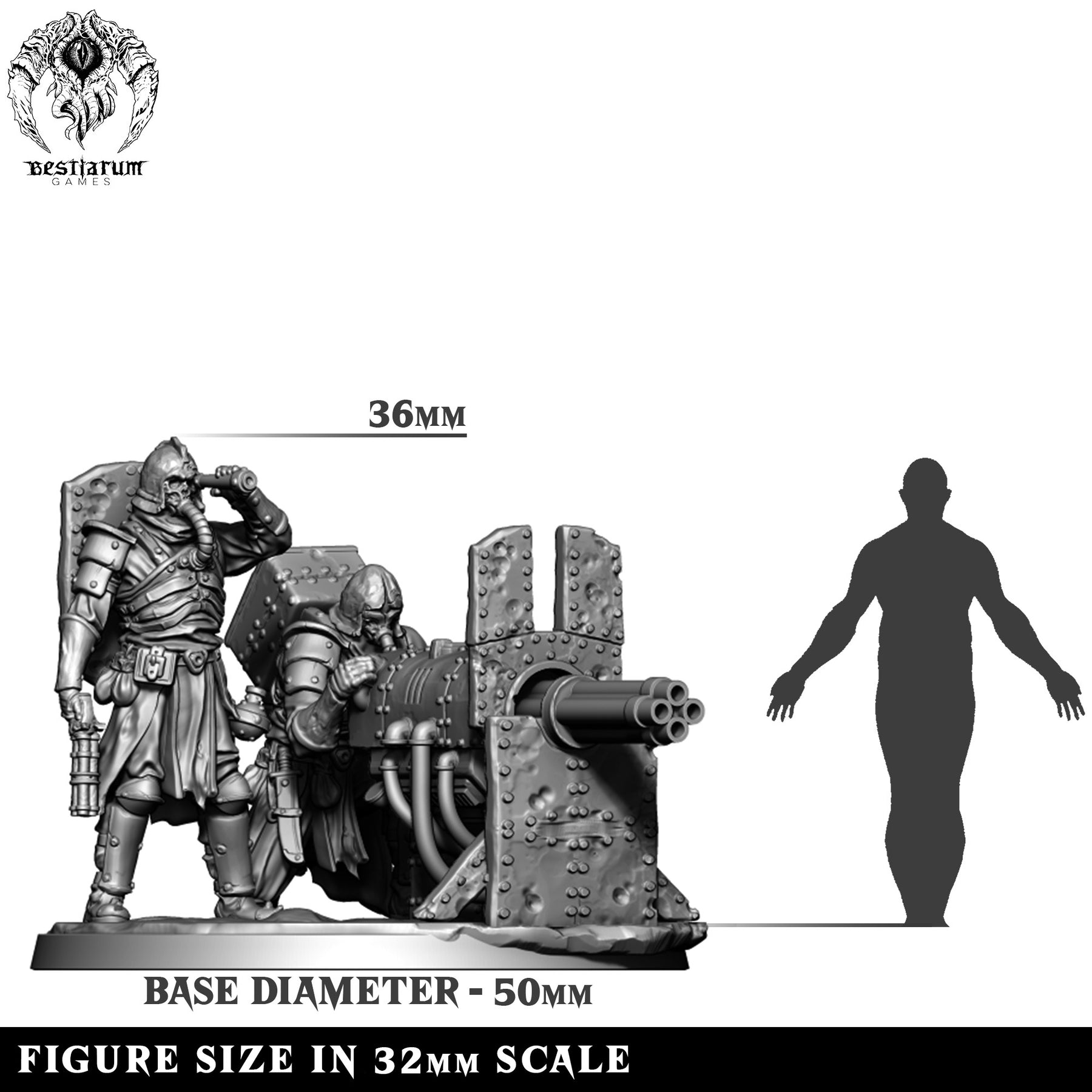 Bring the brutal war-torn world of Allstein to life with the Dieselpunk Squadron. Armed with grim weaponry and forged for the horrors of the Trench Crusade, this heretic guard makes for excellent proxies, kitbash pieces, or full squads for your tabletop battles.