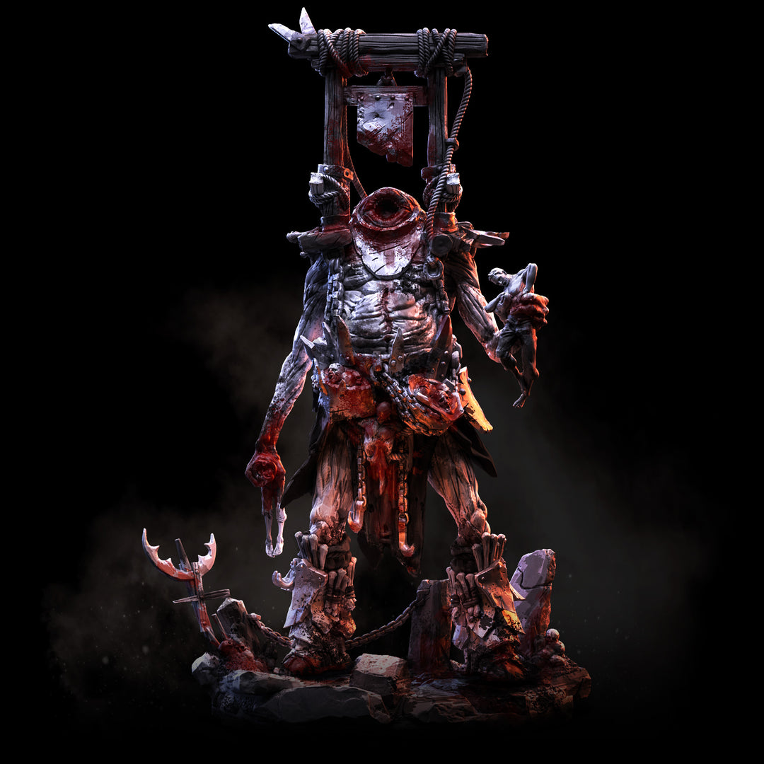 Once noble, now monstrous, these fallen giants exist only to feed. Contains one Fleshglutton Giant on a 90mm base.