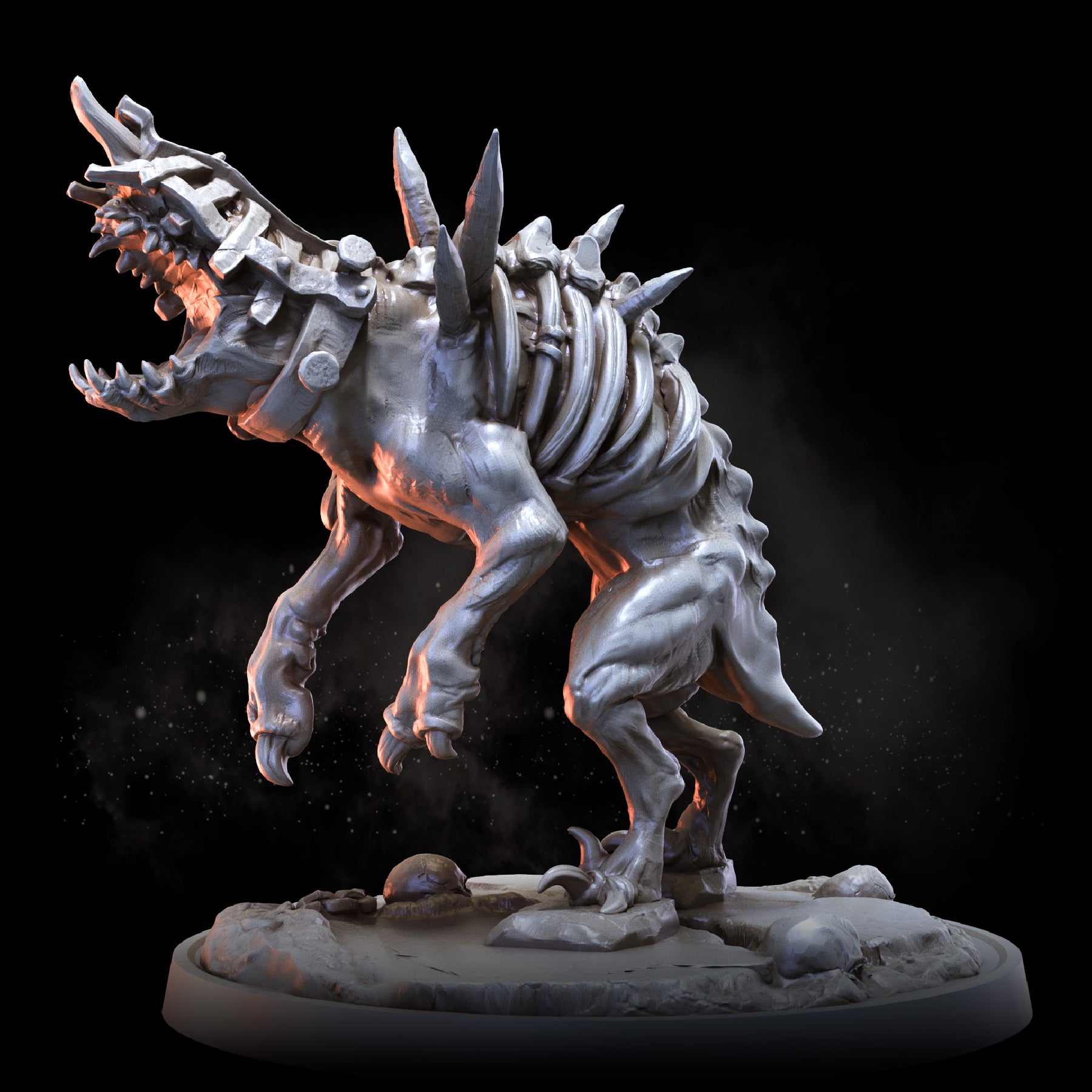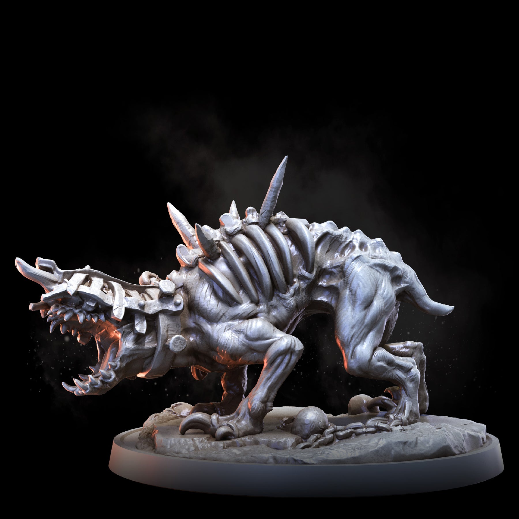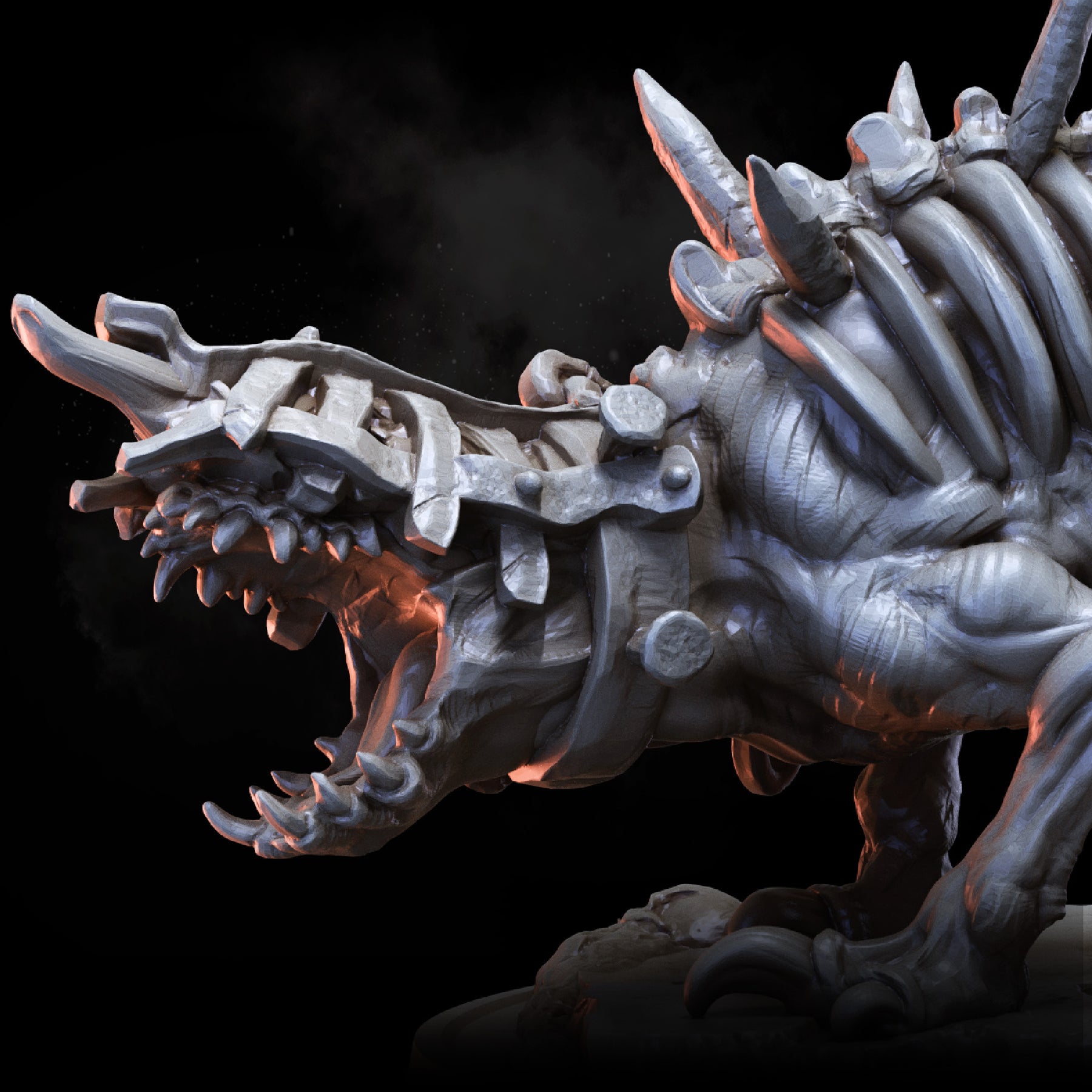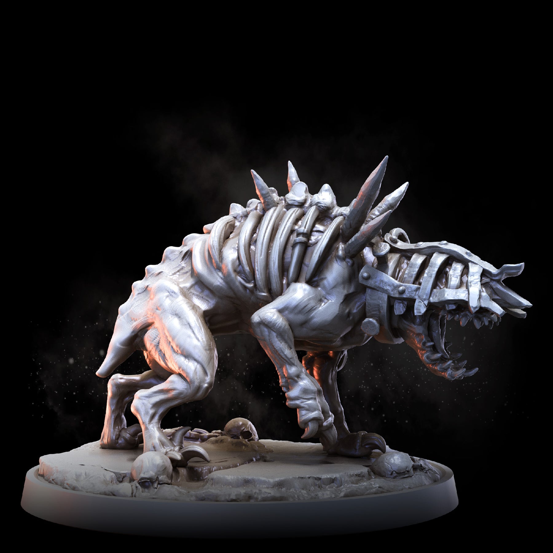 Cage Hounds are frenzied quadrupeds, encased in agony and bristling with vicious, rusted spikes. Roaming in packs reminiscent of wolves, they play a crucial role in the gruesome ecology of the Prison Realm.