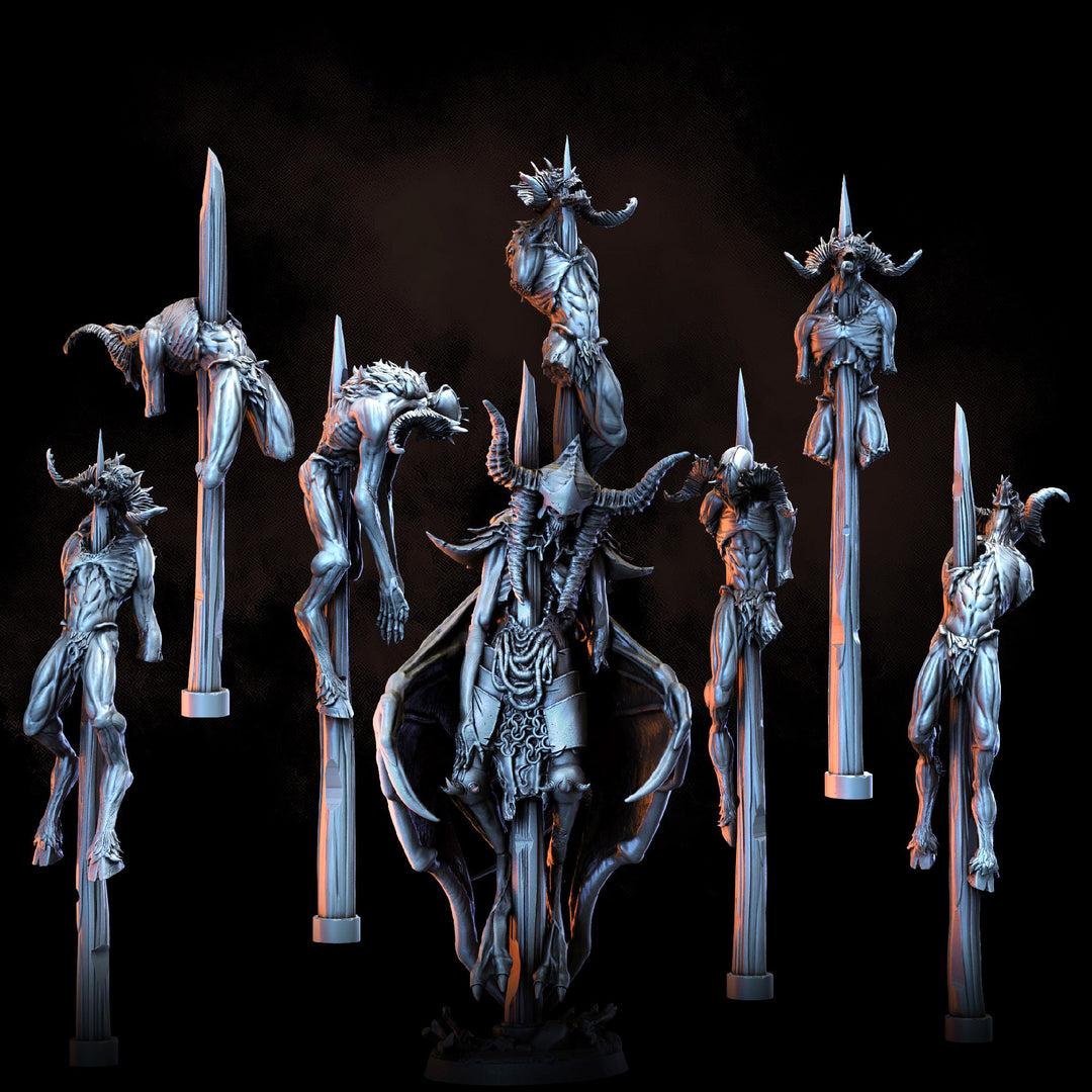 Demons run through with pikes, their shrieking forms nailed to earth in acts of sacred defiance.