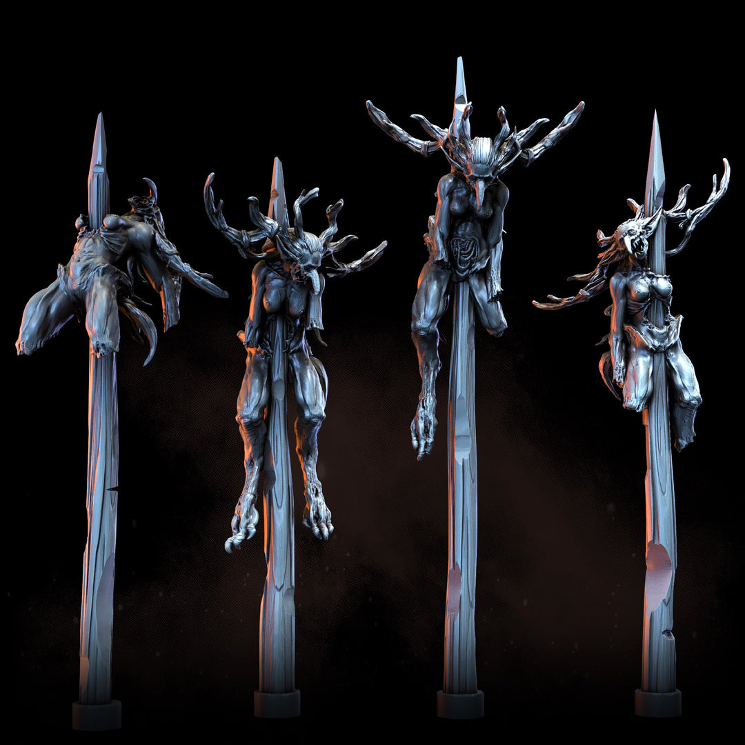 Twisted dryads of the dark forest, pierced and left to rot beneath the open sky.