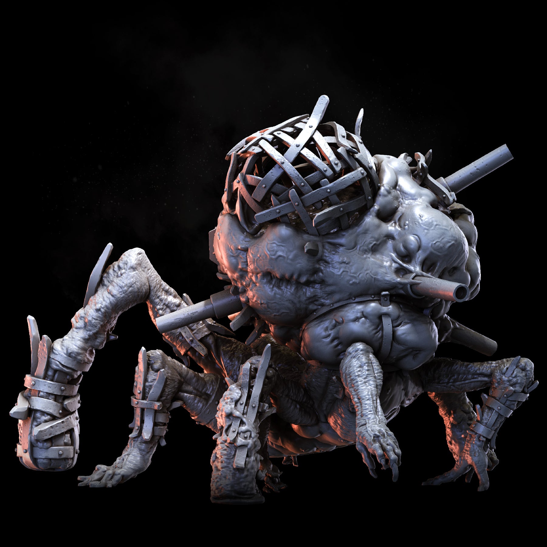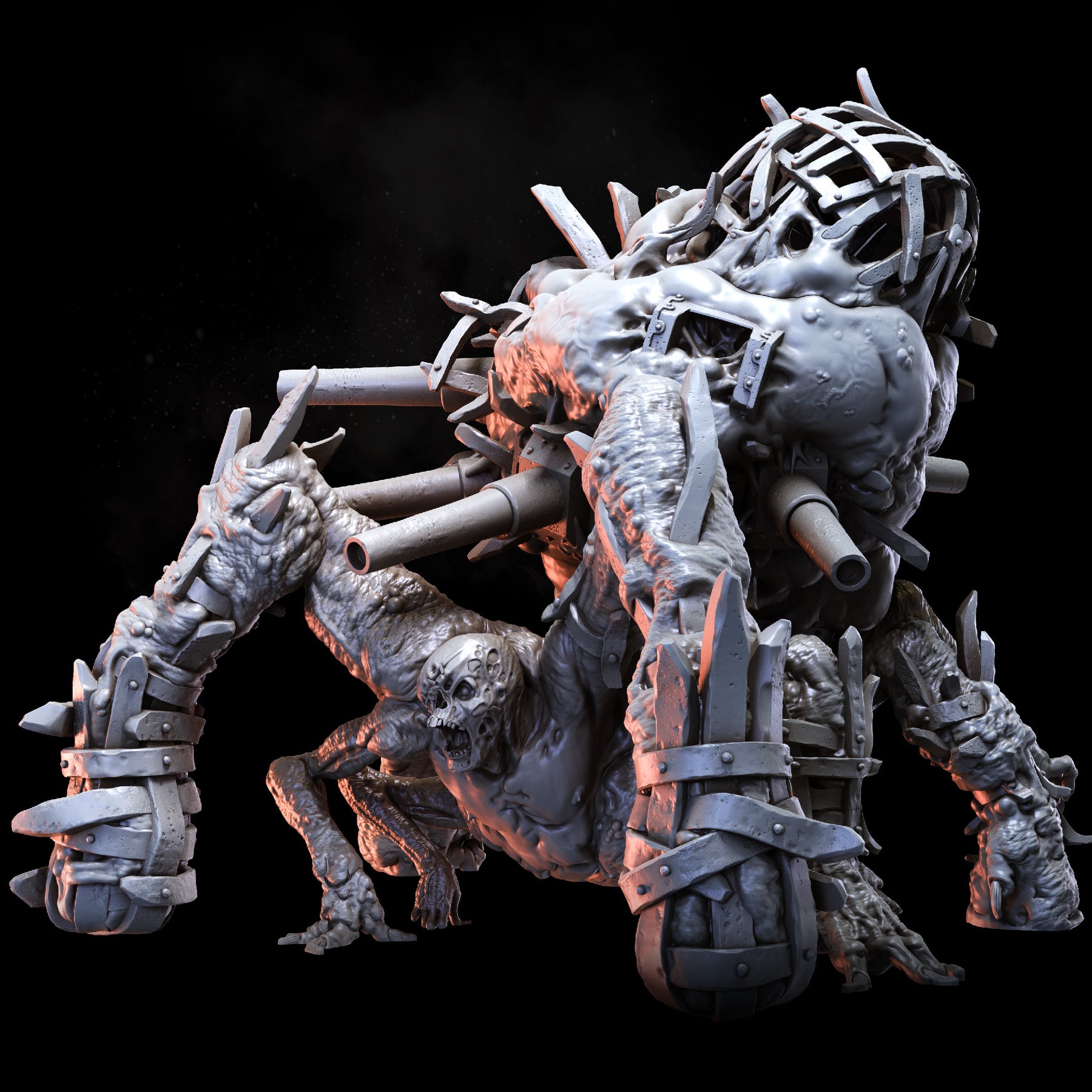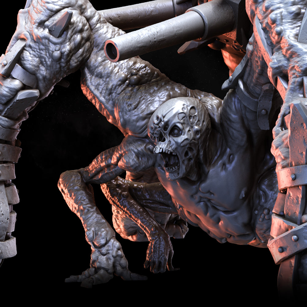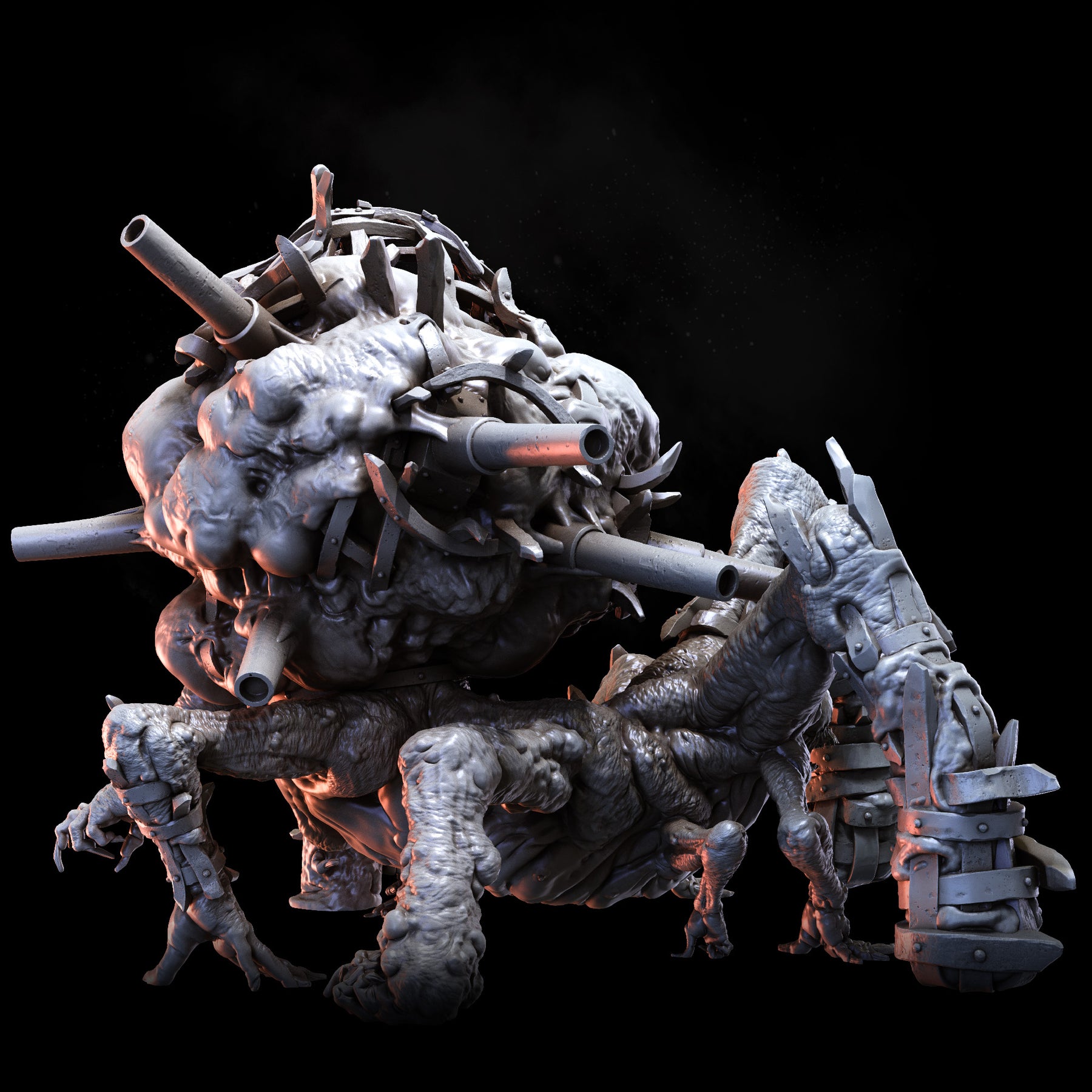 Old Shacklegut looms like a nightmare from the darkest depths of the Prison Realm. A monstrous amalgamation of flesh and metal, it bears a nest of cannons protruding from its grotesque form.