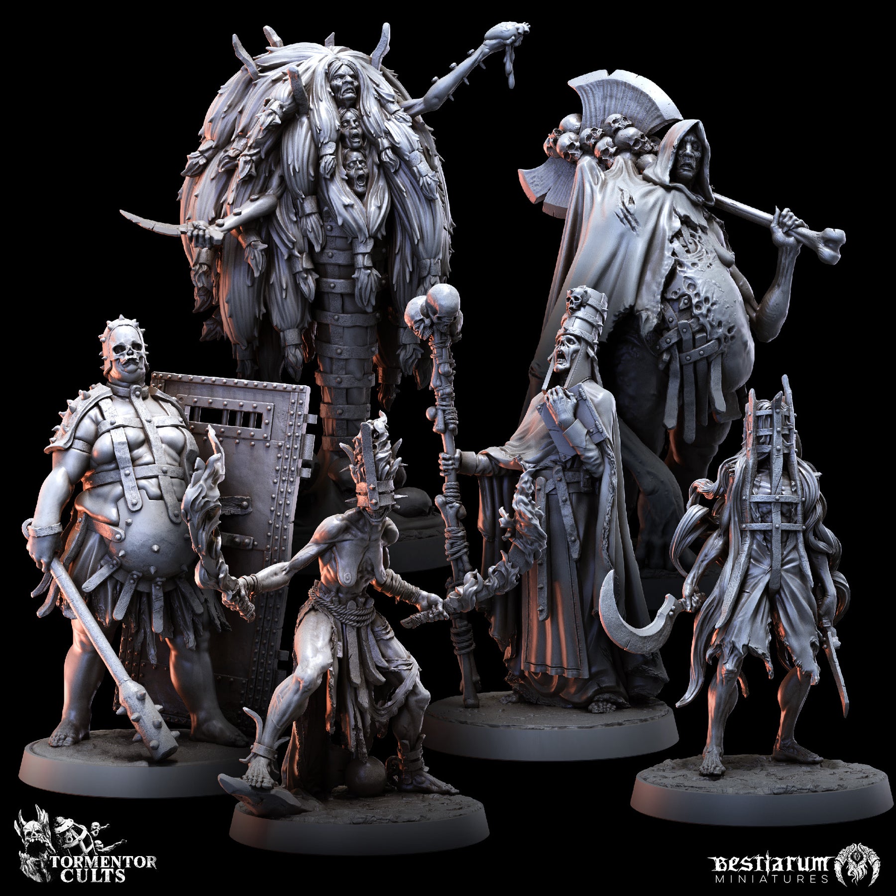 Lead the corrupted Tormentor Cults with the Cultist Characters bundle. Featuring dark leaders and fanatical prophets, these models are perfect as villains in RPGs, commanders in wargames, or centerpiece sculpts for conversions.