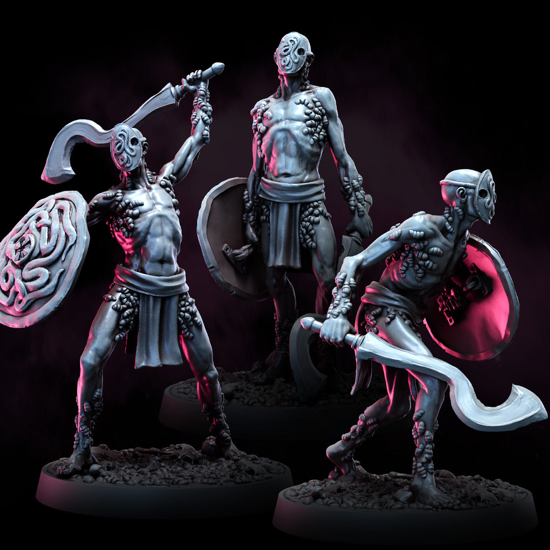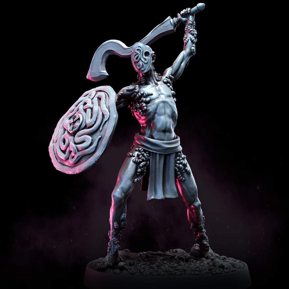 Devoted to the care of the Great Worm's offspring, the Sevadar Hosts carry the eggs of the divine godlings beneath their skin. These living vessels grow the worm spawn with unnatural speed, offering their bodies in service to the faith in exchange for unimaginable pain and sacrifice.