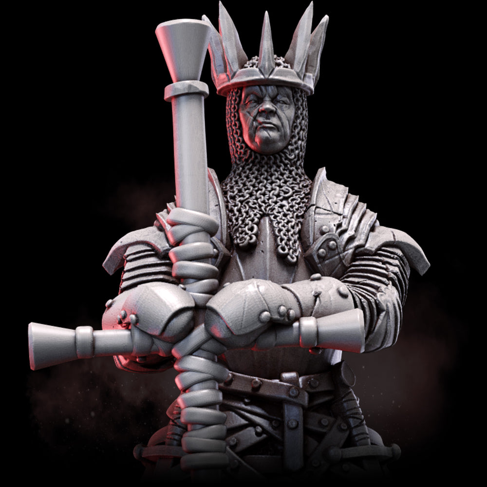 Lady Steelveil, a paragon of nobility clad in battle, strides before her soldiers with a commanding presence. Her face, marked by the scars of war, speaks of unyielding courage and tenacity.