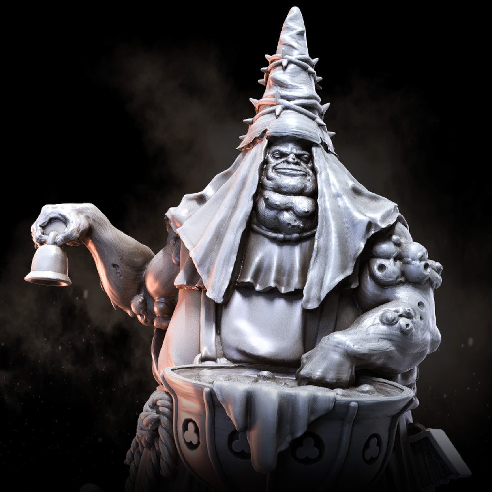 Cloaked in tattered vestments, this once-holy woman now serves a darker creed. She carries a sacred bowl filled with a shimmering crimson ambrosia, the source of her twisted power.