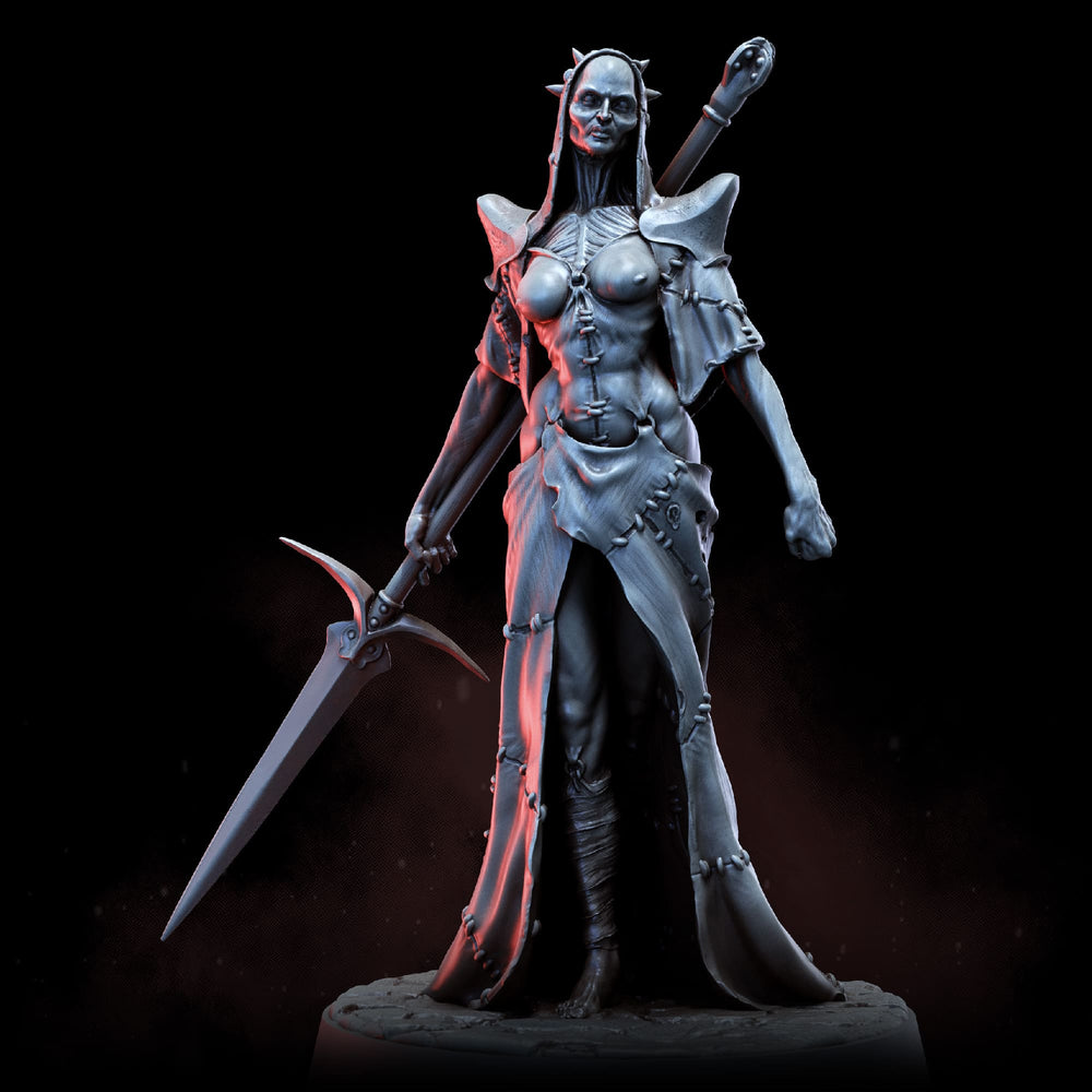 Three masters of flesh and fear, the Coterie reshape flesh with ritual precision and merciless grace. Contains three Coterie models on one 40mm base and two 25mm bases.