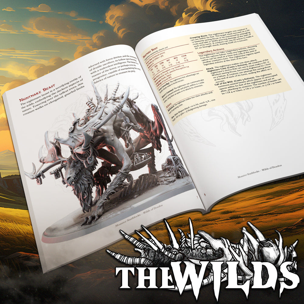 Contains 1 PDF Booklet, featuring 5e Statblocks for the Wilds Part 1 Models. In the untamed wilds of the Doaden lurk the horrors of nature. Perverted by the land’s corruption, they are strange and horrible things. From the deep forests and darkened woods to the shadowed mountains and the grassy plains, adventurers must be cautious.