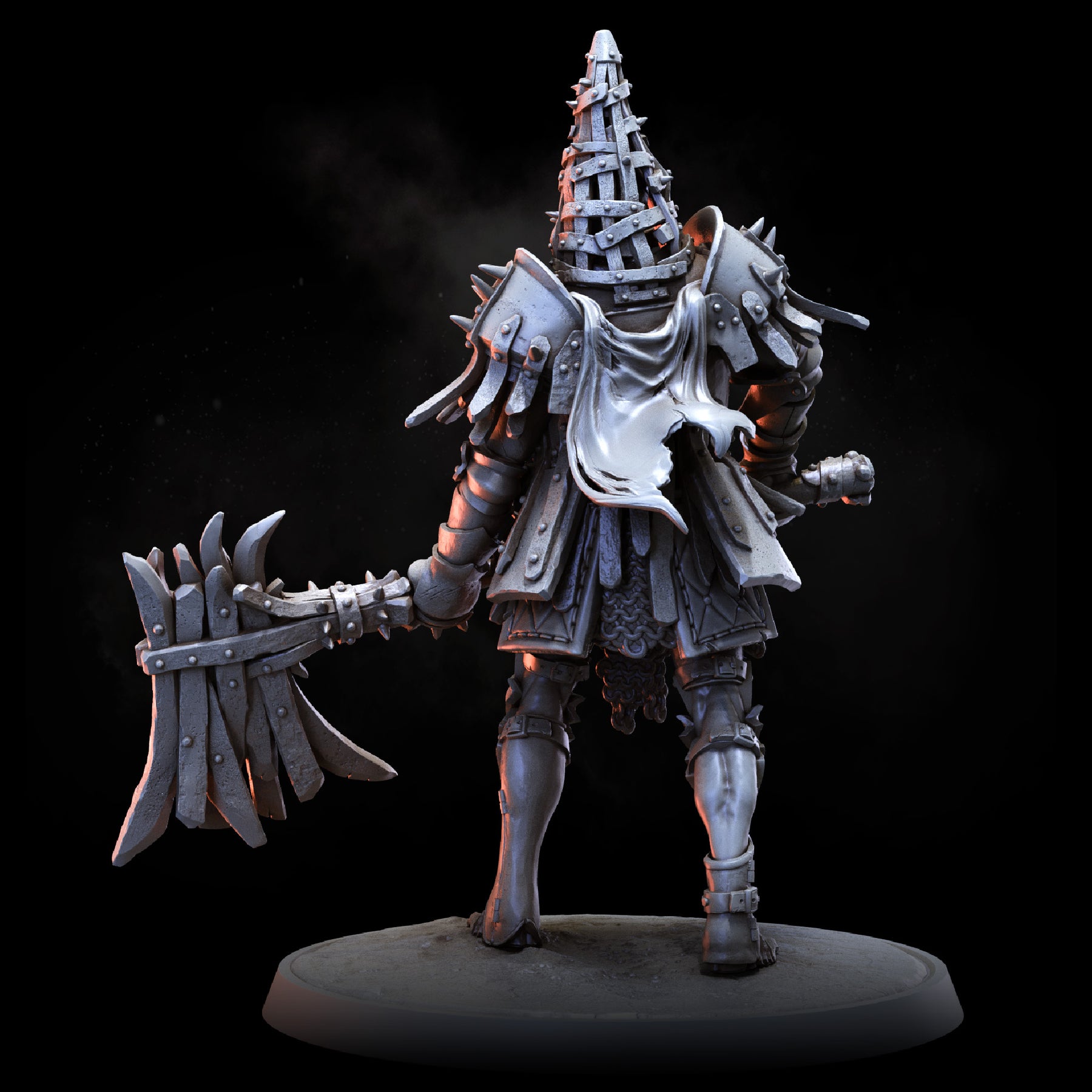 Masters of combat long before their descent into madness, the Torment Knights are viciously cruel warriors. Each has sworn an oath to be forever encased in their rusty, jagged platemail, nailed shut with the thick iron of prison bars.