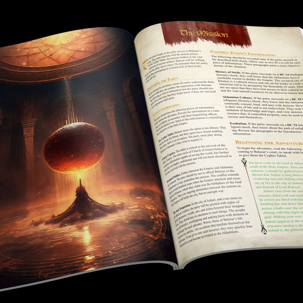 5E Compatible Adventure Module featuring the Court of Balazar. In this adventure, the party must visit Lord Balazar and acquire a relic held in his vast library of ancient artefacts and lost knowledge. Balazar is willing to part with it, but first demands entertainment for his own twisted pleasure.