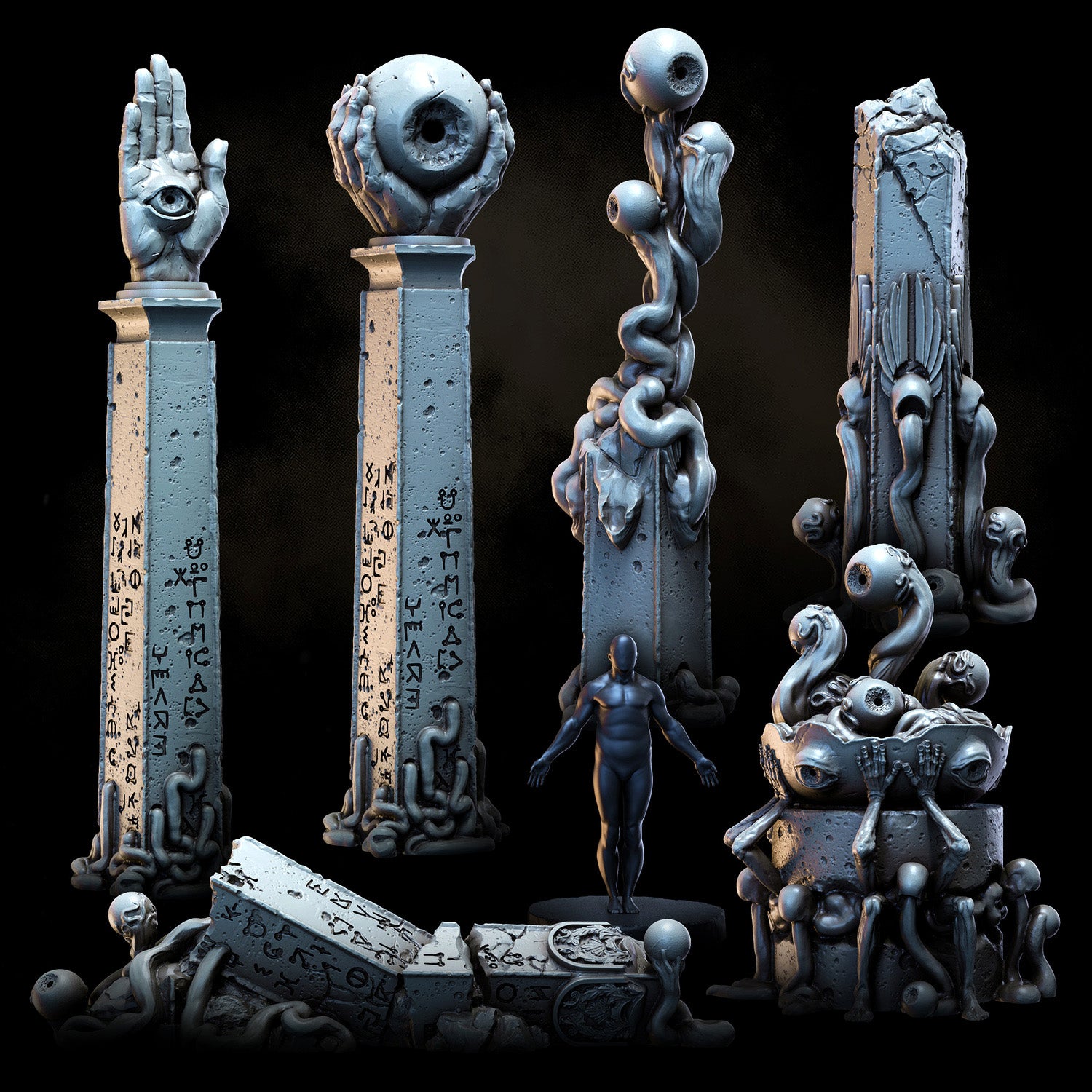 Haunted sanctums pulsing with living eyes that watch all who enter.